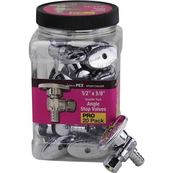 Apollo 1/2" PEX-B Barb x 3/8" Comp Brss 1/4 Turn Angl Stp Vlv Chrm Package Of 20