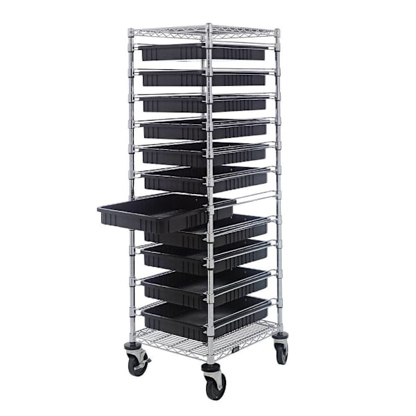 • Quantum Storage Systems Mobile Conductive Bin Cart Chrome 21"W x 24"L x 69"H